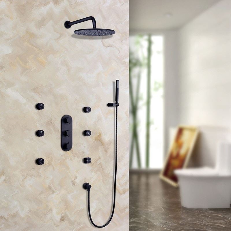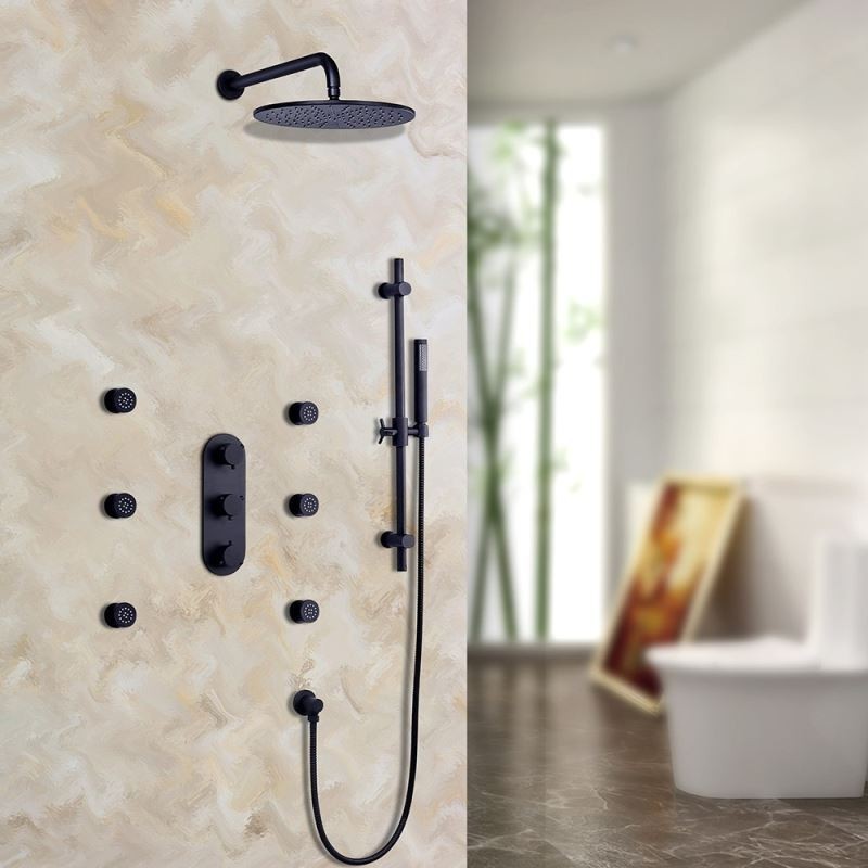 | Flow rate | 2.5 GPM / 9.5 LPM (shower head); 2.5 GPM / 9.5 LPM (hand shower); 1.5 GPM / 5.7 LPM (each body spray) |