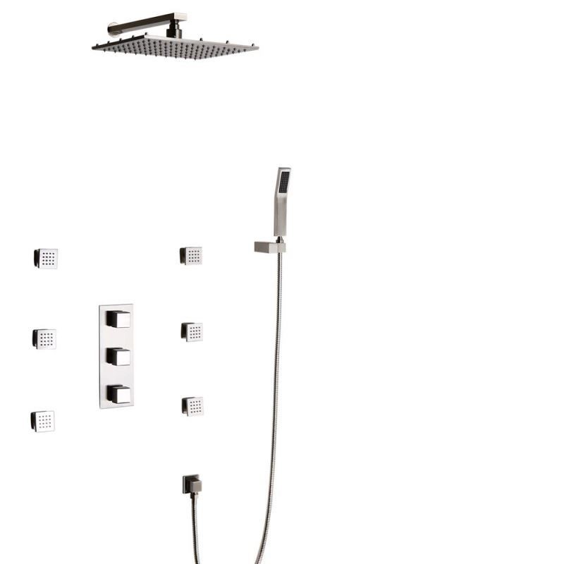 | Throughput | 2.5 GPM / 9.5 LPM (shower head); 2.5 GPM / 9.5 LPM (hand shower); 1.5 GPM / 5.7 LPM (each body spray) |